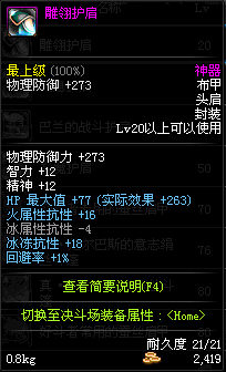 | 20 | 雕翎护肩 | *Lv19~26普通地下城怪物掉落 *在加百利的神秘商店购买 |