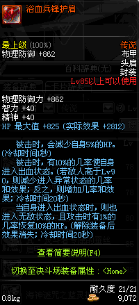 | 85 | 浴血兵锋护肩 | *恐怖邪念体 掉落(能量阻截战 11图) *设计图(能量阻截战 登场的NPC加百利 出售) |