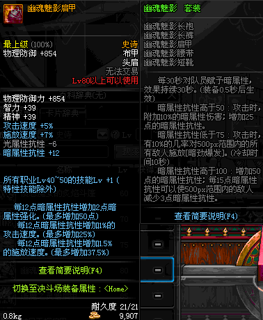 | 80 | 幽魂魅影肩甲 | *Lv79~86深渊地下城怪物掉落 | 幽魂魅影 套装 | |