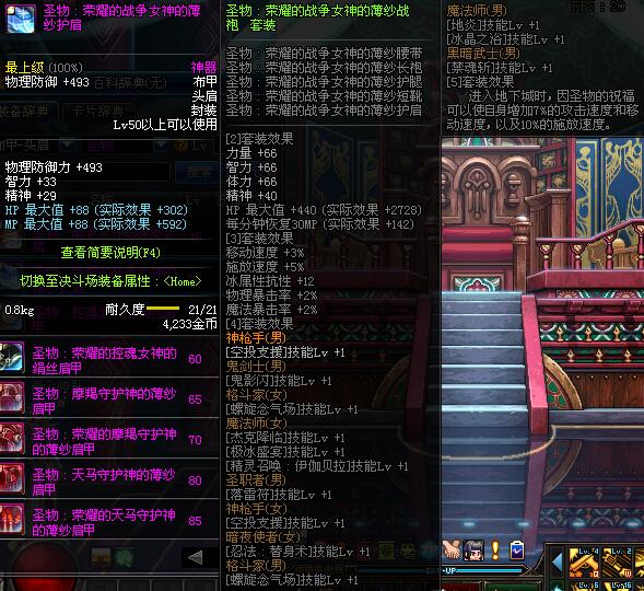 | 50 | 圣物 :荣耀的战争女神的薄纱护肩 | *Lv50~56普通地下城怪物掉落 |