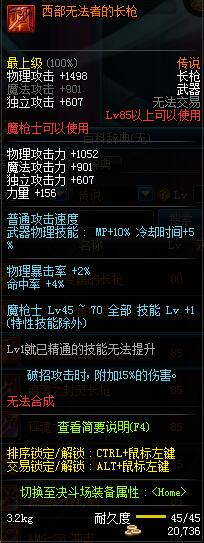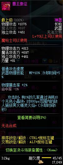 | 45 | 圣物 :冥火精灵长枪 | *Lv45~51普通地下城怪物掉落 |
