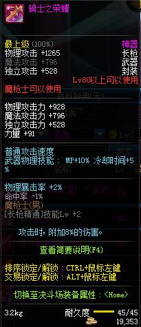 | 80 | 传承 :光域魔神长枪 | |||