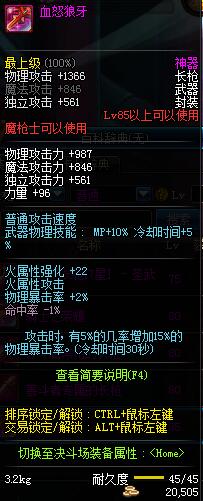 | 85 | 血怒狼牙 | *Lv85~91普通地下城怪物掉落 *在加百利的神秘商店购买 |
