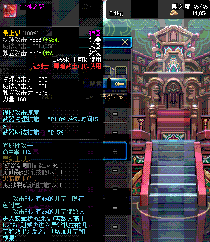 | 55 | 雷神之怒 | *Lv53~61普通地下城怪物掉落 *在加百利的神秘商店购买 |