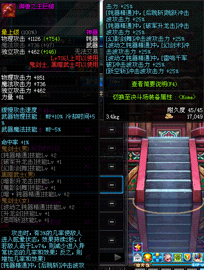 | 45 | 圣物 : 冥火精灵之龙骨棒 | *Lv45~51普通地下城怪物掉落 |