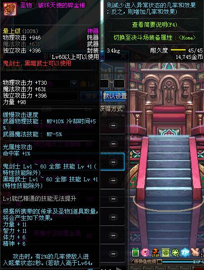 | 60 | 圣物 : 破坏天使的碎金棒 | *Lv58~66普通地下城怪物掉落 |