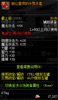 | 辅助装备: | 全职业 鬼剑士 女鬼剑 女格斗 男格斗 神枪手 女枪手 魔法师 男法师 圣职者 暗夜使者 守护者 |
