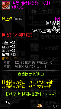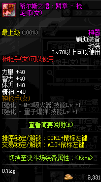 | 鬼剑士 | 神枪手 | 格斗家 | 魔法师 | 圣职者 | 暗夜使者 | 布甲 | 皮甲 | 重甲 | 轻甲 | 板甲 | 饰品 |