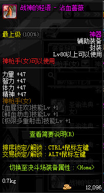 | 辅助装备: | 全职业 鬼剑士 女鬼剑 女格斗 男格斗 神枪手 女枪手 魔法师 男法师 圣职者 暗夜使者 守护者 |