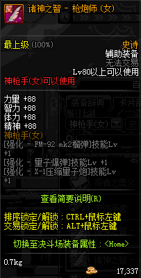 | 80 | 诸神之智 - 枪炮师(女) | |||