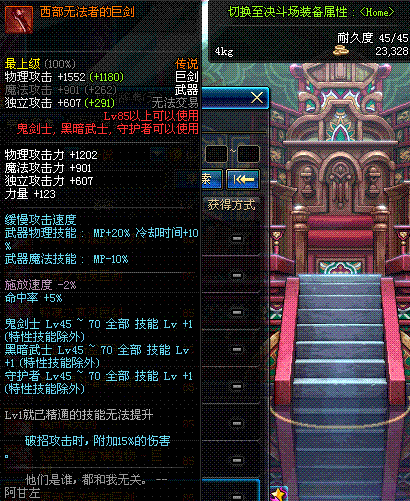 | 55 | 范哲利斯的绝望巨剑 | *范哲利斯 掉落(地下城: 无尽的噩梦) *在NPC敏泰的物品店购买(阿拉德陨石×330) |