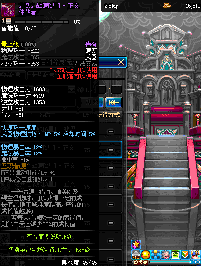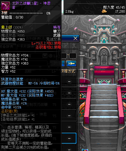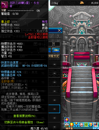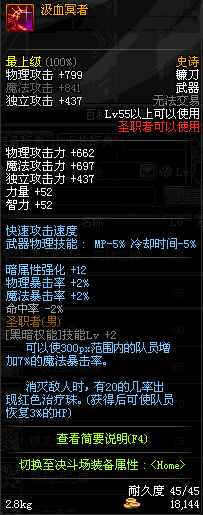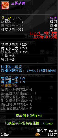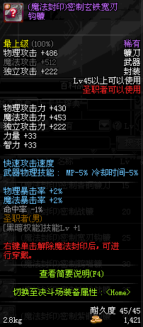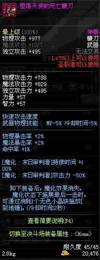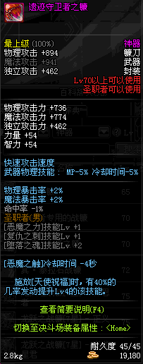 | 45 | 末日浩劫之镰 | *Lv45~51普通地下城怪物掉落 *在加百利的神秘商店购买 |