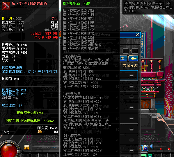| 45 | 圣物 : 冥火精灵之玄铁战镰 | *Lv45~51普通地下城怪物掉落 |