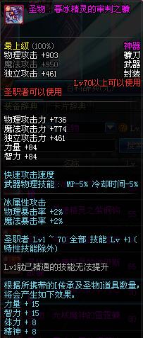 | 70 | 圣物 : 暮冰精灵的审判之镰 | *Lv70~76普通地下城怪物掉落 |