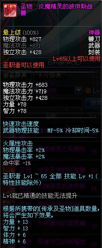 | 65 | 圣物 : 炎魔精灵的波伊斯战镰 | *Lv65~71普通地下城怪物掉落 |