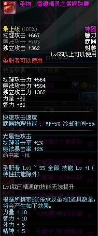 | 55 | 圣物 : 雷谴精灵之紫铜钩镰 | *Lv53~61普通地下城怪物掉落 |