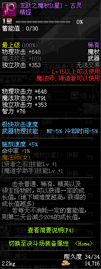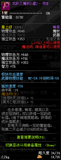 | 75 | 龙跃之魔杖[2星] – 月蚀 | *完成二次觉醒任务后可以从NPC小铁柱处获得此道具。 | ||