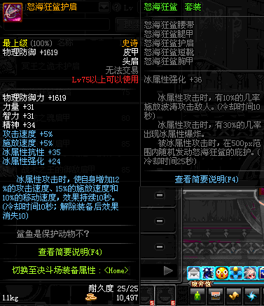 | 75 | 怒海狂鲨护肩 | *Lv74~81深渊地下城怪物掉落 | 怒海狂鲨 套装 | |