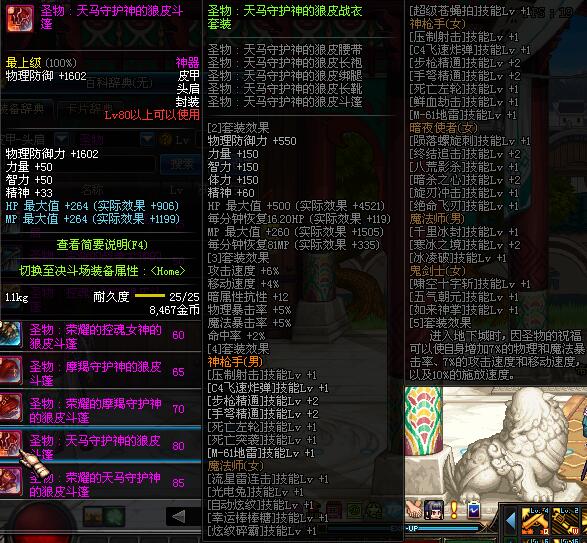 | 80 | 圣物 :天马守护神的狼皮斗篷 | *Lv80~86普通地下城怪物掉落 | ||