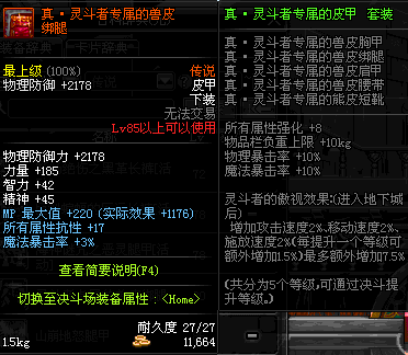 | 85 | 圣物 :荣耀的天马守护神的狼皮绑腿 | *Lv85~91普通地下城怪物掉落 | ||
