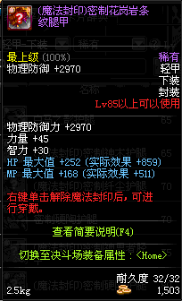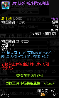 | 35 | (魔法封印)密制陶瓷绑腿 | *Lv34~41普通地下城怪物掉落 |