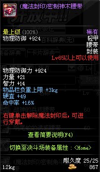 | 30 | (魔法封印)密制虎骨腰带 | *Lv29~36普通地下城怪物掉落 *完成[唤醒亡者的力量]任务 *使用Lv29~36怪物掉落的设计图进行制作 |