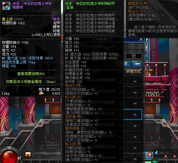 | 55 | 圣物 :控魂女神的软陶腰带 | *Lv53~61普通地下城怪物掉落 |