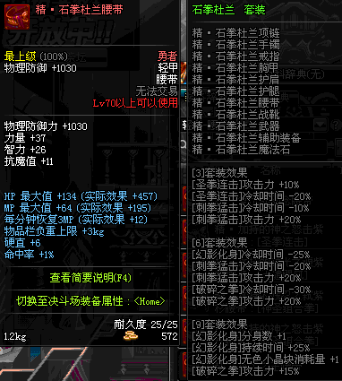 | 70 | 圣物 :荣耀的摩羯守护神的橡木腰带 | *Lv70~76普通地下城怪物掉落 |