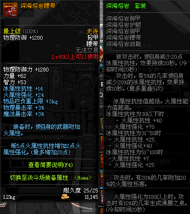 | 80 | 深海熔岩腰带 | *Lv79~86深渊地下城怪物掉落 | 深海熔岩 套装 | |