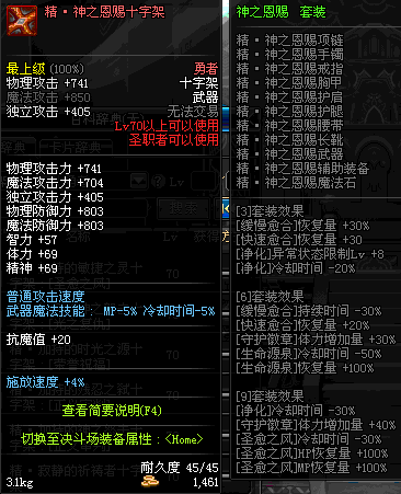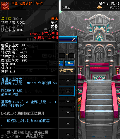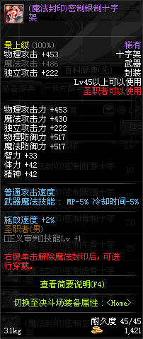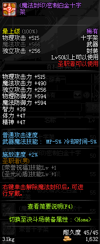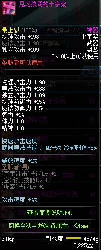 | 45 | 歌兰蒂斯的圣银十字架 | *Lv45~51普通地下城怪物掉落 *在加百利的神秘商店购买 |