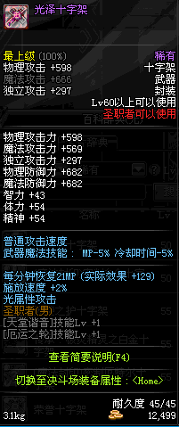 | 65 | 圣物 : 圣光精灵的预言十字架 | *Lv65~71普通地下城怪物掉落 |