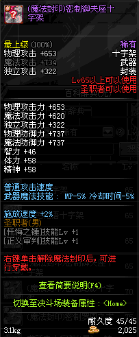 | 60 | (魔法封印)密制预言十字架 | *Lv58~66普通地下城怪物掉落 *完成[消灭机关兵]任务 *使用Lv58~66怪物掉落的设计图进行制作 |