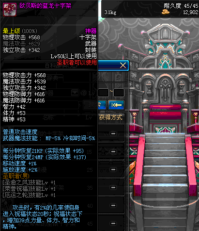 | 50 | 欧贝斯的蓝龙十字架 | *Lv50~56普通地下城怪物掉落 *在加百利的神秘商店购买 |