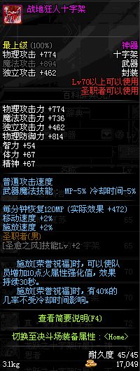 | 70 | 战地狂人十字架 | *Lv70~76普通地下城怪物掉落 *在加百利的神秘商店购买 |