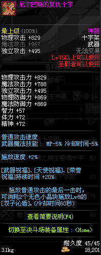 | 55 | 圣物 : 极炎精灵之白金十字架 | *Lv53~61普通地下城怪物掉落 |