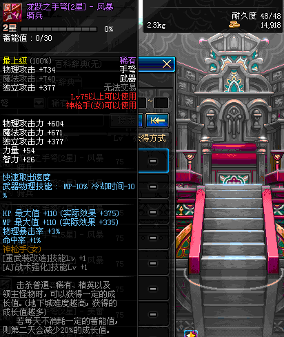 | 75 | 龙跃之手弩[2星] – 风暴骑兵 | *完成二次觉醒任务后可以从NPC小铁柱处获得此道具。 | ||