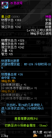 | 35 | 冰宫战弩 | *Lv34~41普通地下城怪物掉落 *在加百利的神秘商店购买 |