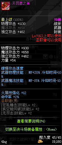 | 45 | 天启战斧 | *Lv45~51普通地下城怪物掉落 *在加百利的神秘商店购买 |