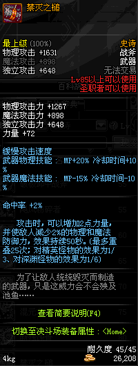 | 85 | 禁灭之槌 | *Lv84~91深渊地下城怪物掉落 *攻坚队完成安徒恩团队模式的[消灭安徒恩]任务时,获得的奖励。 |