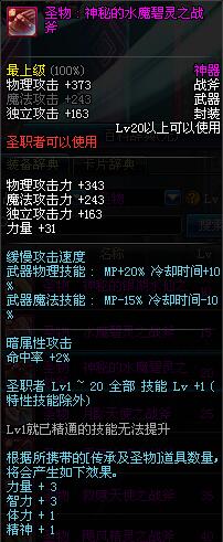 | 20 | 圣物 : 神秘的水魔碧灵之战斧 | *Lv19~26普通地下城怪物掉落 | ||