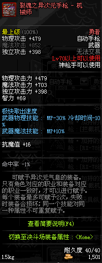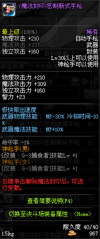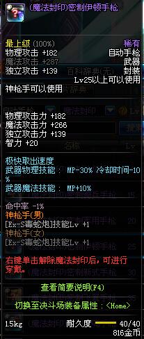 | 15 | (魔法封印)密制骑兵手枪 | *Lv13~21普通地下城怪物掉落 *完成[专职贺礼]任务 |