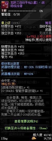 | 75 | 龙跃之自动手枪[4星] – 毁灭者 | *完成二次觉醒任务后可以从NPC小铁柱处获得此道具。 | ||