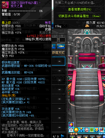 | 75 | 龙跃之自动手枪[5星] – 机械之灵 | *完成二次觉醒任务后可以从NPC小铁柱处获得此道具。 | ||
