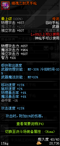 | 85 | 镇魂之封灵手枪 | *时空之门地区 - 吟游诗人艾丽丝 出售 (镇魂之石×100) *购买镇魂武器礼盒(低级镇魂之石×140) |