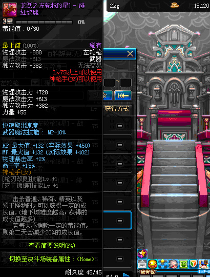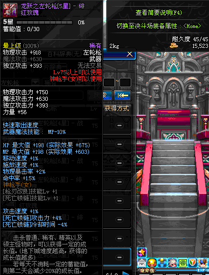 | 75 | 龙跃之左轮枪[3星] – 毁灭者 | *完成二次觉醒任务后可以从NPC小铁柱处获得此道具。 | ||