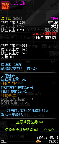 | 45 | 圣物 : 冥火精灵之转轮手枪 | *Lv45~51普通地下城怪物掉落 |