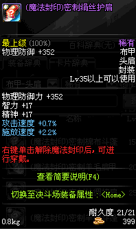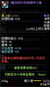 | 15 | (魔法封印)密制棉布斗篷 | *Lv13~21普通地下城怪物掉落 *完成[[魔法封印防具]天才武道家的试炼(1/3)]任务 *使用Lv13~21怪物掉落的设计图进行制作 |