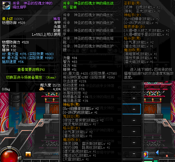 | 辅助装备: | 全职业 鬼剑士 女鬼剑 女格斗 男格斗 神枪手 女枪手 魔法师 男法师 圣职者 暗夜使者 守护者 |