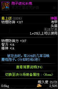 | 25 | 孢子进化长袍 | *蘑菇怪人夏图 掉落(蘑菇庄园) *在NPC阿尔伯特·伯恩斯坦的物品店购买(阿拉德陨石×37) |
