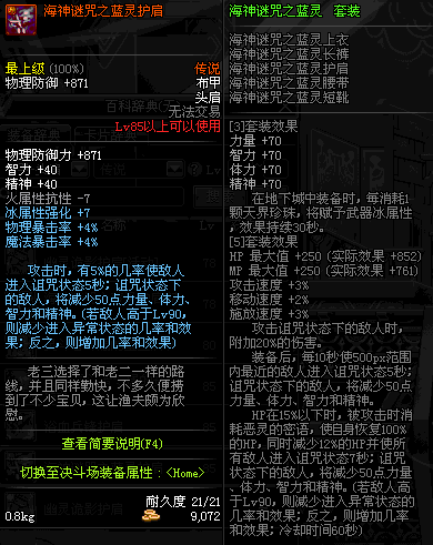 | 85 | 海神谜咒之蓝灵护肩 | *昨日之巴斯顿 掉落 (在远古地下城里出没。) *从NPC鲁特的物品店出售的[海神谜咒防具礼盒]中获得 *船长鲁特 出售 (深海诅咒 : 解咒法×600) |